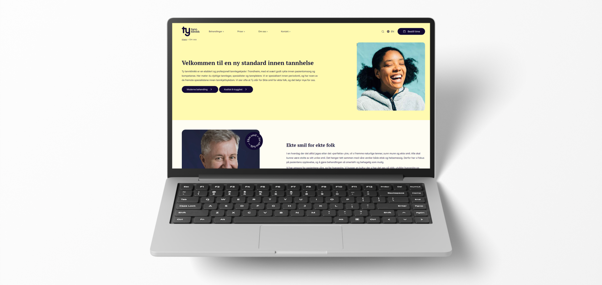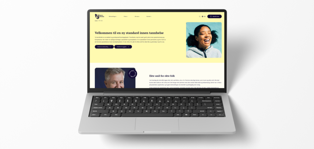 For å tilpasse Ty Tannklinikk til denne veksten, lanserte vi for kort tid siden en totalfornyet nettside til kunden. Dette var ikke bare en oppdatering, men en strategisk oppgradering bygget for å håndtere økt kapasitet og sementere deres posisjon i markedet. Prosjektet krevde en helhetlig tilnærming som omfattet alt fra merkevare- og SEO strategi, design, til teknisk utvikling.
